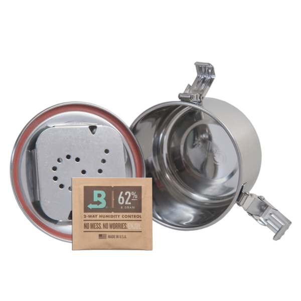 The CVault storage container is constructed of 304 food grade stainless steel and is impenetrable by light, combined with a humidity pack it creates “perfect conditions” for long- or short-term storage and curing.